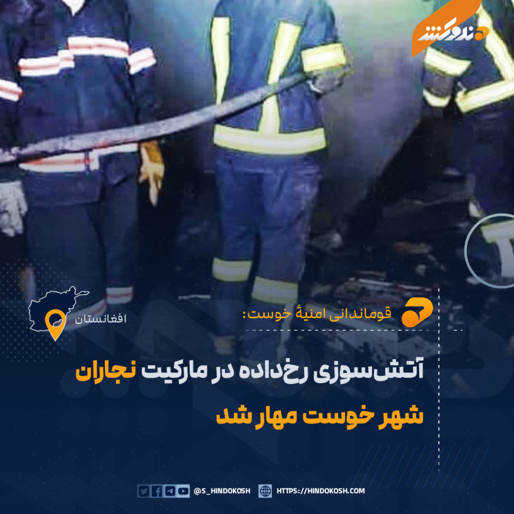 منسوبین اطفائیه قوماندانی امنیهٔ خوست آتش‌سوزی‌ای را که در مارکیت نجاران شهر خوست به وقوع پیوسته بود، مهار کرده و از وارد شدن خسارات بیشتر جلوگیری کردند.