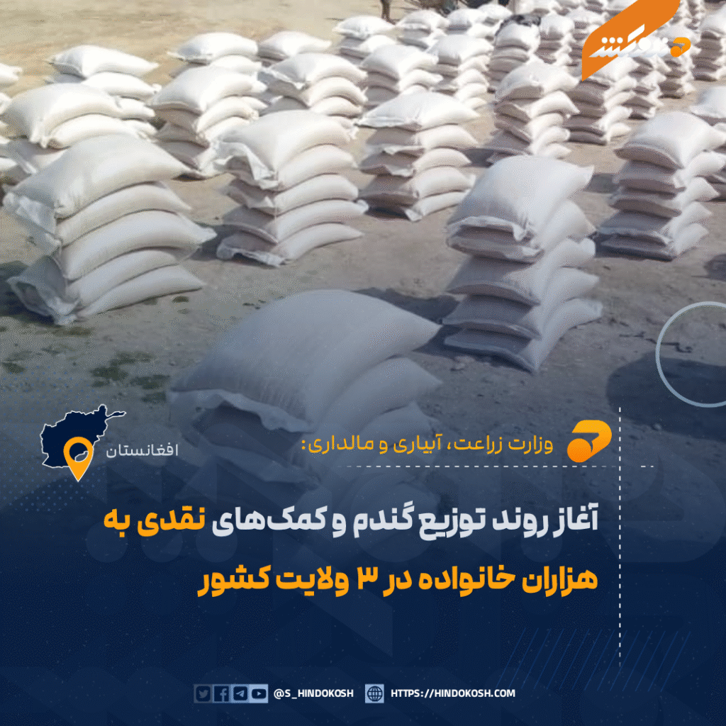 وزارت زراعت، آبیاری و مالداری می‌گوید که روند توزیع گندم و کمک‌های نقدی به ۳ هزار و ۶۰۰ خانواده‌ی عودت‌کننده در ولایت‌های کاپیسا، ارزگان و پروان آغاز شده است.