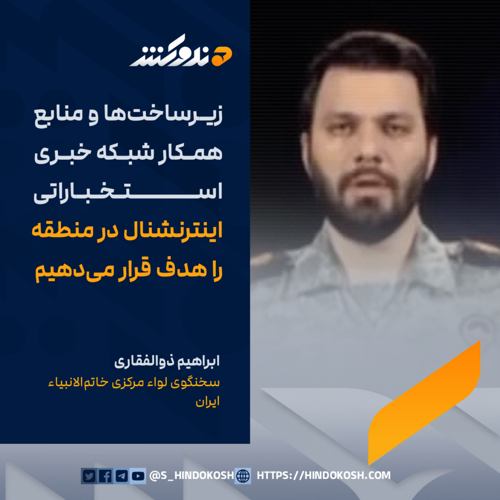 ابراهیم ذوالفقاری، سخنگوی لواء مرکزی خاتمالانبیاء ایران: زیرساختها و منابع همکار شبکه خبری استخباراتی اینترنشنال در منطقه را هدف قرار میدهیم