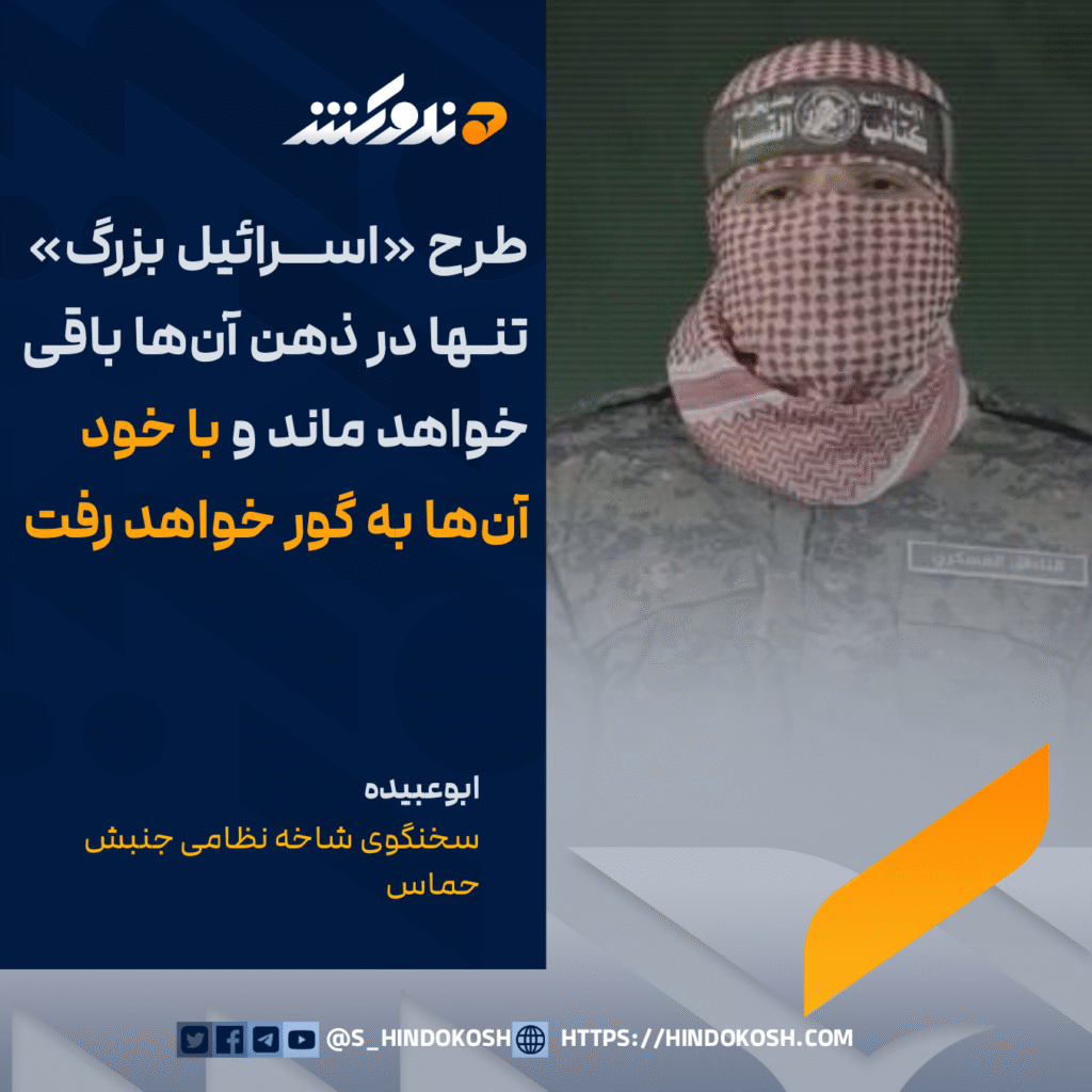 ابوعبیده، سخنگوی شاخه نظامی جنبش حماس: طرح «اسرائیل بزرگ» تنها در ذهن آنها باقی خواهد ماند و با خود آنها به گور خواهد رفت.