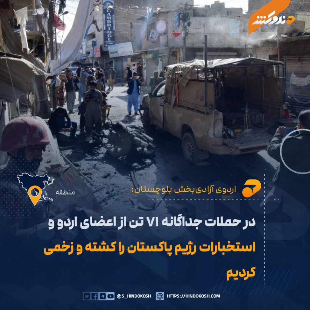 اردوی آزادیبخش بلوچستان: در حملات جداگانه ۷۱ تن از اعضای اردو و استخبارات رژیم پاکستان را کشته و زخمی کردیم