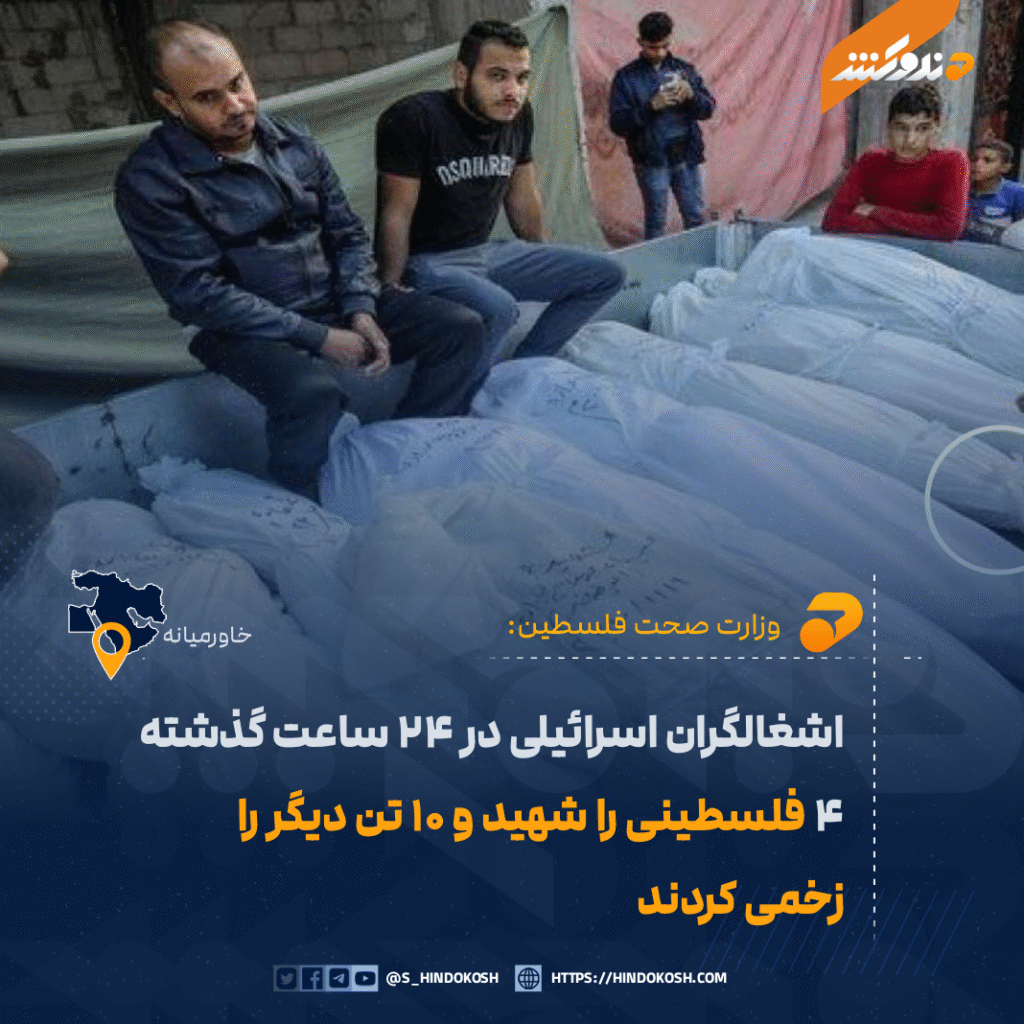 وزارت صحت فلسطین اعلام کرد که در پی حملات نیروهای اسرائیلی طی ۲۴ ساعت گذشته، ۴ فلسطینی شهید و ۱۰ نفر دیگر مجروح شده‌اند.