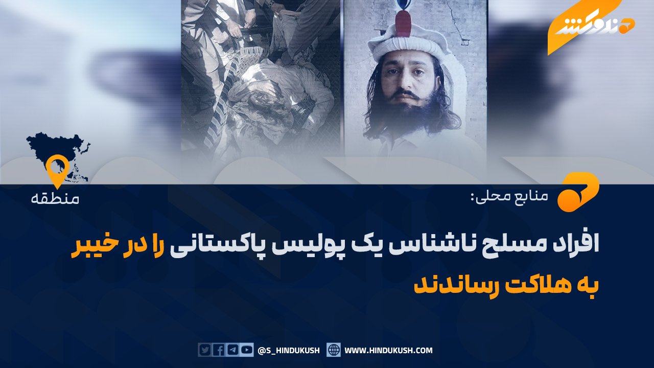 منابع محلی در ایالت خیبرپختونخوا به «صدای هندوکش» میگویند که در منطقهٔ شلوبر از مربوطات تحصیل بارهٔ ولسوالی خیبر، افراد ناشناس بر یک عسکر پولیس پاکستانی بهنام علامه خان تیراندازی کردهاند که در نتیجه وی کشته شده است.
