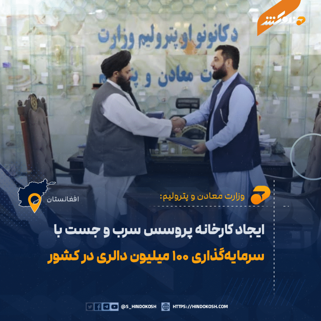 ایجاد کارخانه پروسس سرب و جست با سرمایهگذاری ۱۰۰ میلیون دالری در کشور