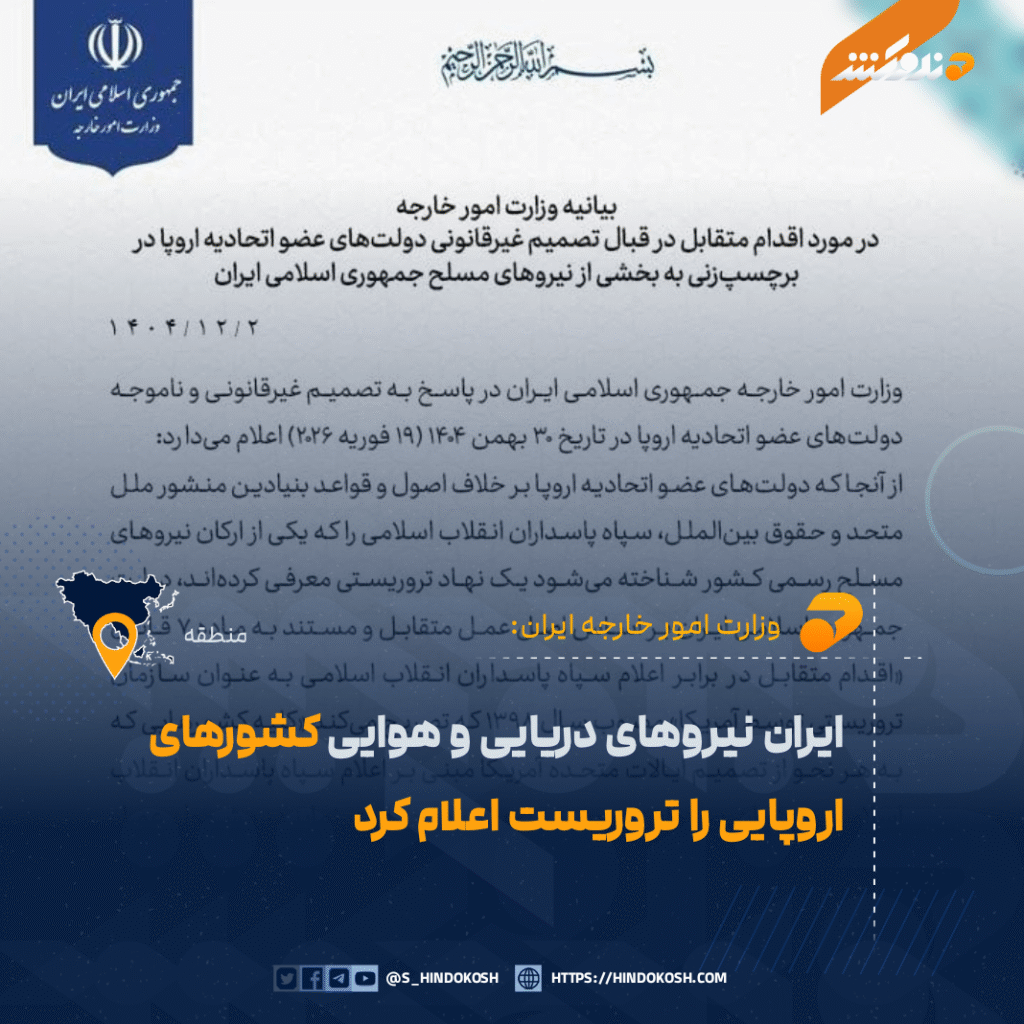 ایران نیروهای دریایی و هوایی کشورهای اروپایی را تروریست اعلام کرد