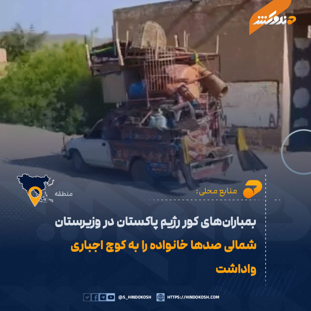 منابع محلی می‌گویند که در ولسوالی وزیرستان شمالی خیبر پختونخوا، به دلیل حملات کور طیاره‌های بی‌سرنشین رژیم پاکستان و قتل‌های مرموز، صدها خانواده مجبور به ترک خانه‌های‌شان شده‌اند.