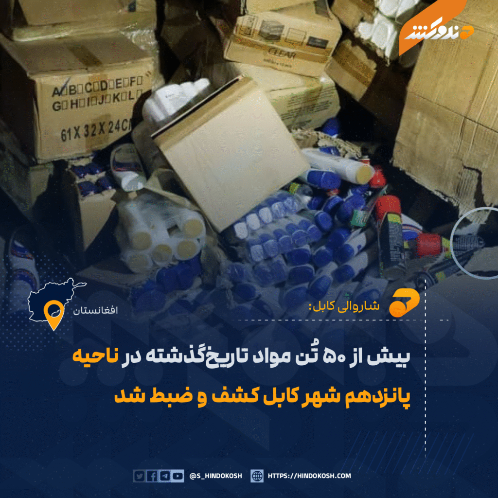 شاروالی کابل در خبرنامهای اعلام کرد که مسئولان این اداره، بیش از ۵۰ تُن مواد خوراکی و غیرخوراکی تاریخگذشته و بیکیفیت را از یک گودام در مربوطات ناحیه پانزدهم شهر کابل کشف و ضبط کردهاند.
