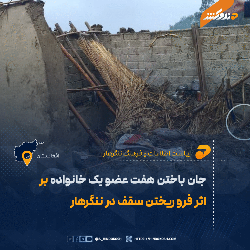 جان باختن هفت عضو یک خانواده بر اثر فرو ریختن سقف در ننگرهار