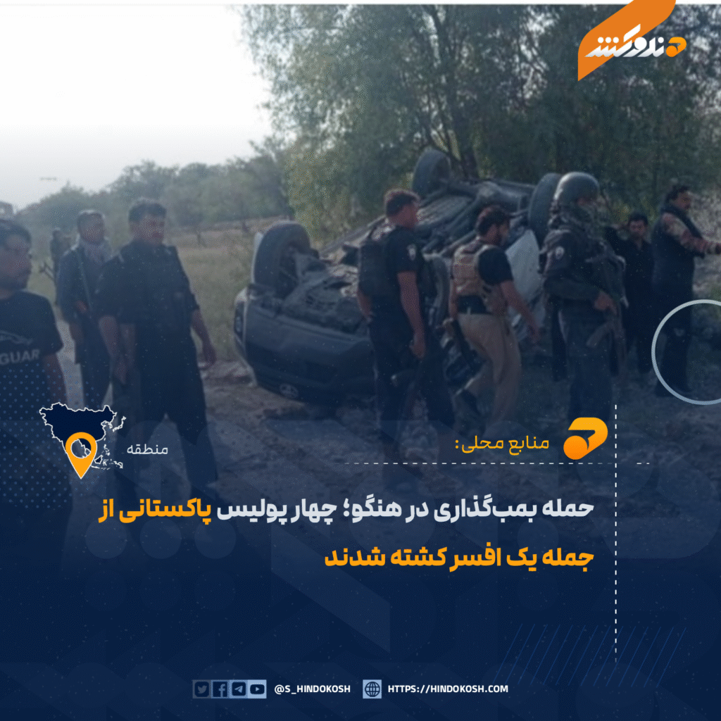 یک موتر پلیس در ولسوالی هنگو در خیبر پختونخوا هدف حمله بمبگذاری قرار گرفت که در نتیجه آن چهار پلیس پاکستانی کشته و دو نفر دیگر زخمی شدند.