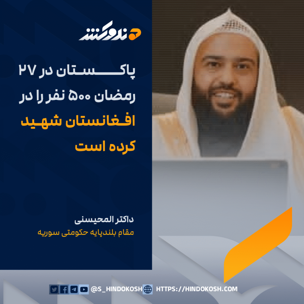 داکتر المحیسنی، مقام بلندپایه حکومتی سوریه: پاکستان در ۲۷ رمضان ۵۰۰ نفر را در افغانستان شهید کرده است