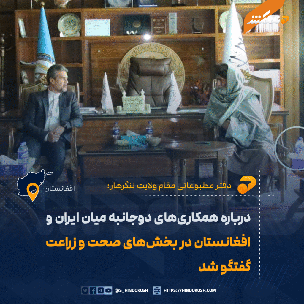 دفتر مطبوعاتی مقام ولایت ننگرهار میگوید که مجید رضاپناه، سرکونسل ایران در ننگرهار، با ملا محمد نعیم آخند، والی این ولایت، در مورد همکاری در بخشهای صحت و زراعت و همچنین گسترش تجارت دوجانبه گفتگو کرده است.