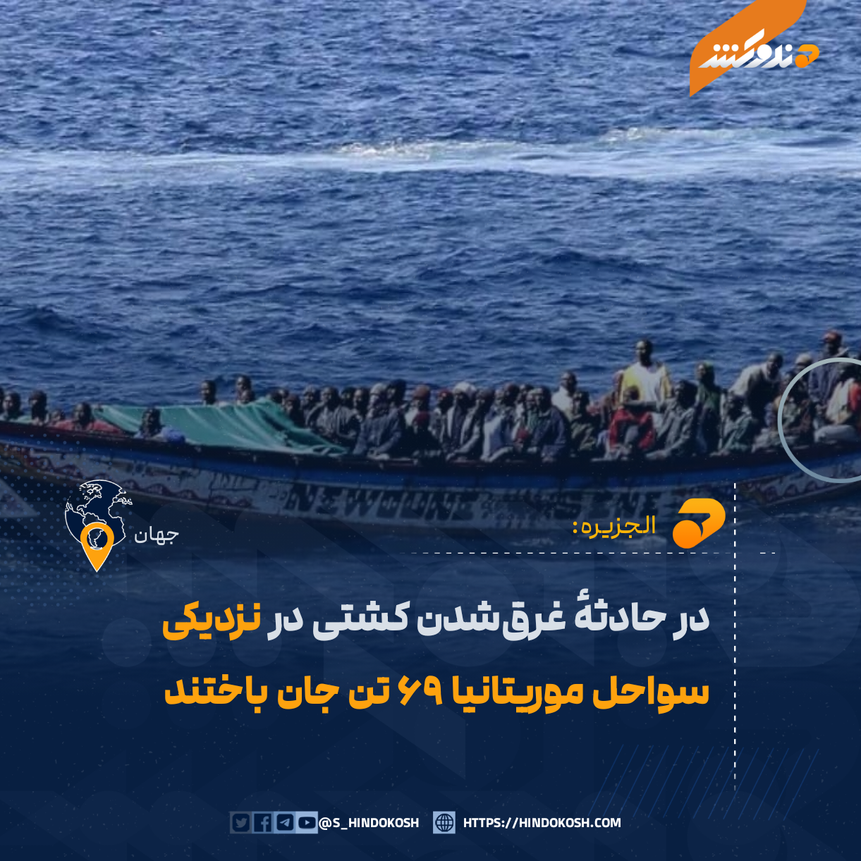 بهگزارش شبکهٔ خبری الجزیره، یک کشتی حامل مهاجران در نزدیکی سواحل کشور موریتانیا واژگون شده است که در نتیجهٔ آن ۶۹ نفر جان خود را از دست داده و دهها تن دیگر ناپدید شدهاند.