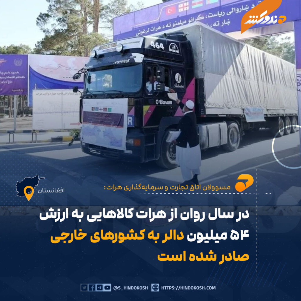 مسوولان اتاق تجارت و سرمایه‌گذاری هرات می‌گویند که روند صادرات تولیدات داخلی و محصولات زراعتی در این ولایت در سال روان گسترش یافته و رشد قابل ملاحظه‌ای داشته است.