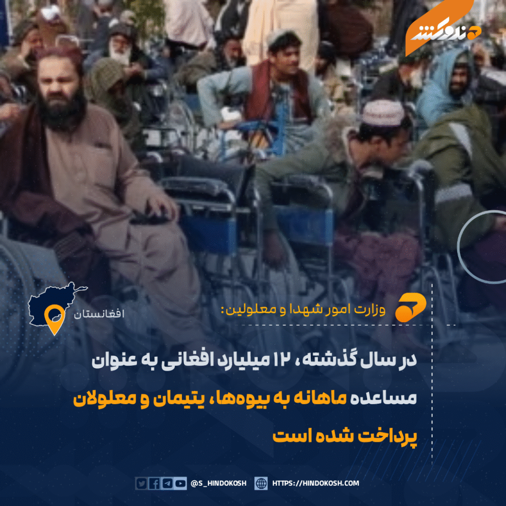 در سال گذشته، ۱۲ میلیارد افغانی به عنوان مساعده ماهانه به بیوه‌ها، یتیمان و معلولان پرداخت شده است