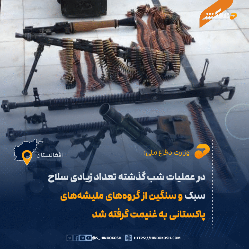در عملیات شب گذشته تعداد زیادی سلاح سبک و سنگین از گروههای ملیشههای پاکستانی به غنیمت گرفته شد