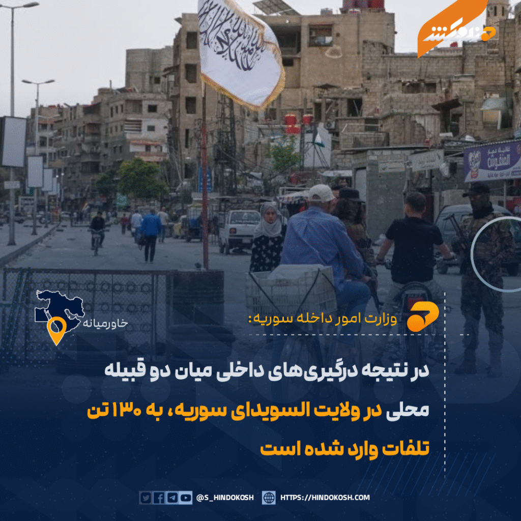 وزارت داخله سوریه تأیید کرده است که در پی درگیریهای برخاسته میان قبایل دروزی و عشایری در ولایت السویدا، از شب گذشته تا اکنون دستکم ۳۰ تن کشته و ۱۰۰ تن دیگر به شدت زخمی شدهاند.