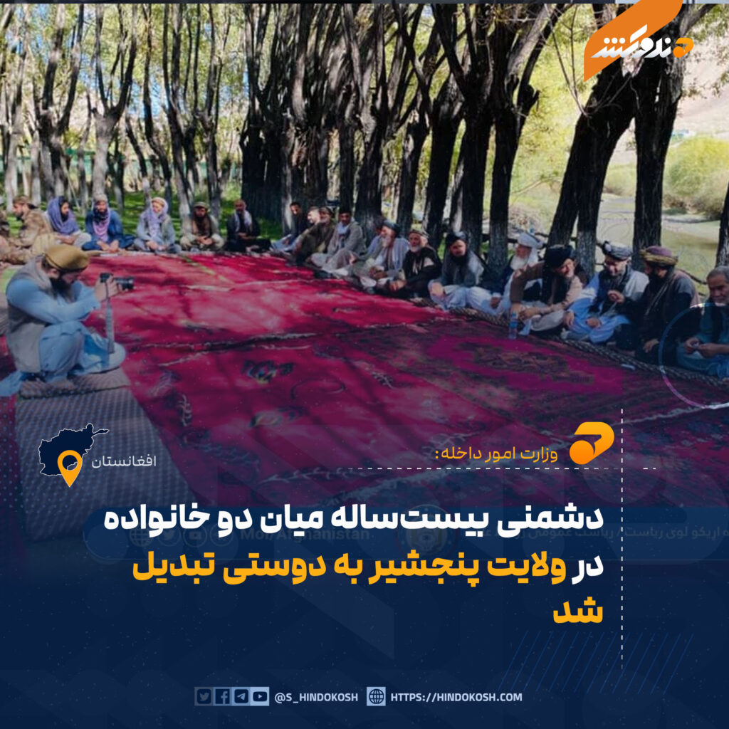 بهگفتهٔ مسئولان قوماندانی امنیهٔ پنجشیر، با تلاشهای این اداره، دشمنی میان دو خانواده در مرکز این ولایت پایان یافت و به دوستی مبدل گردید.