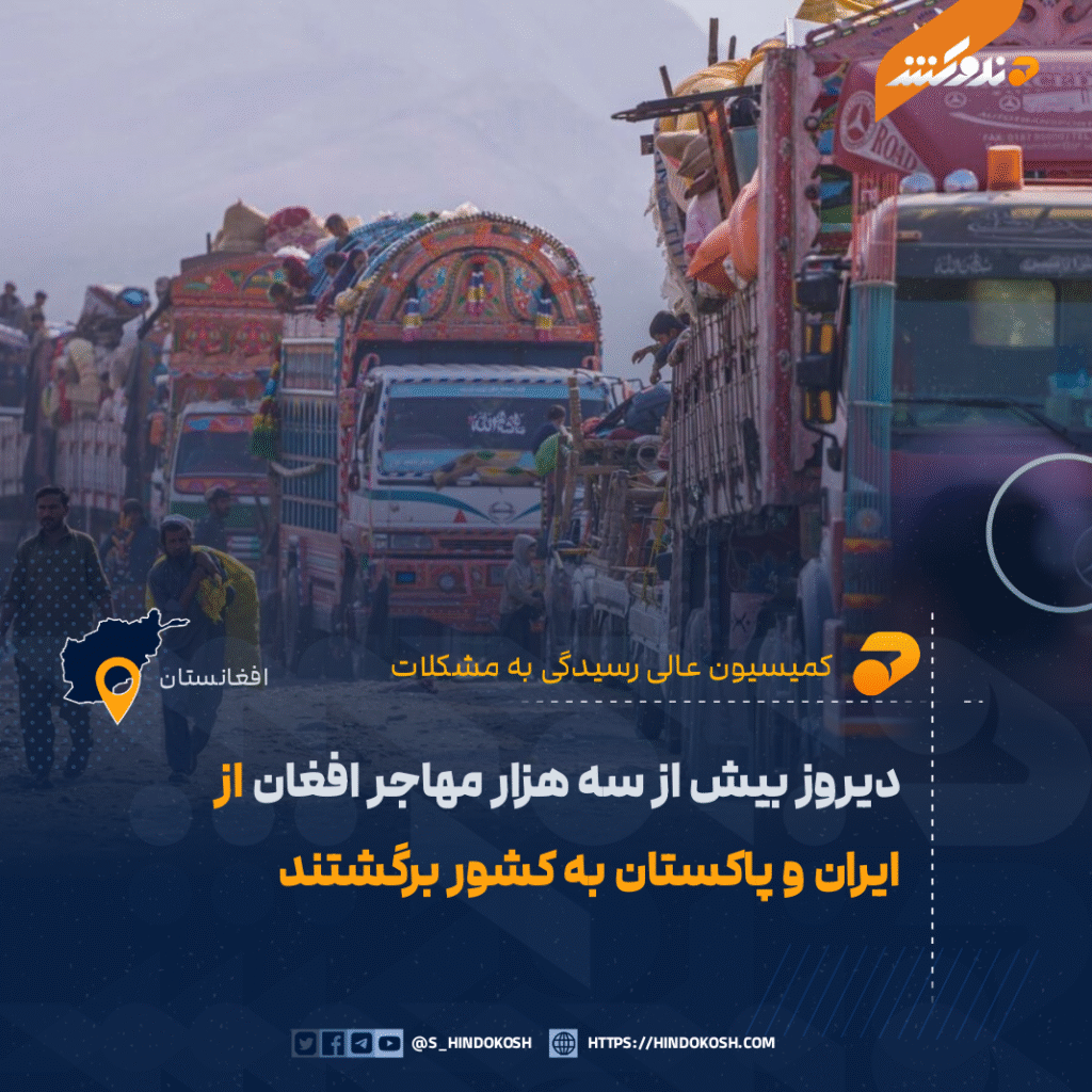 کمیسیون عالی رسیدگی به مشکلات مهاجرین گفته است که روز گذشته (پنجشنبه) بیش از سه هزار مهاجر افغان از ایران و پاکستان به کشور بازگشتهاند.