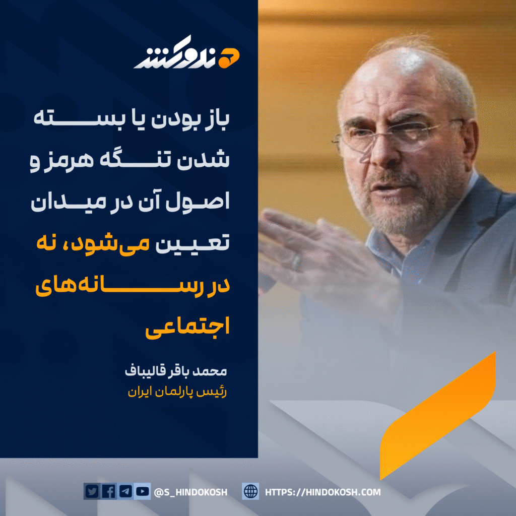 رئیس پارلمان ایران، محمد باقر قالیباف: باز بودن یا بسته شدن تنگه هرمز و اصول آن در میدان تعیین می‌شود، نه در رسانه‌های اجتماعی