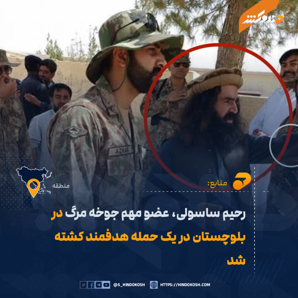 منابع محلی می‌گویند رحیم ساسولی، یکی از اعضای کلیدی گروه موسوم به «جوخه مرگ» که تحت حمایت رژیم پاکستان است، به همراه محافظ خود در یک حمله هدفمند در بلوچستان کشته شده است.