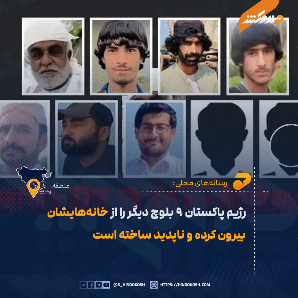 You are at:Home»منطقه»رسانه‌های محلی: رژیم پاکستان ۹ بلوچ دیگر را از خانه‌هایشان بیرون کرده و ناپدید ساخته است