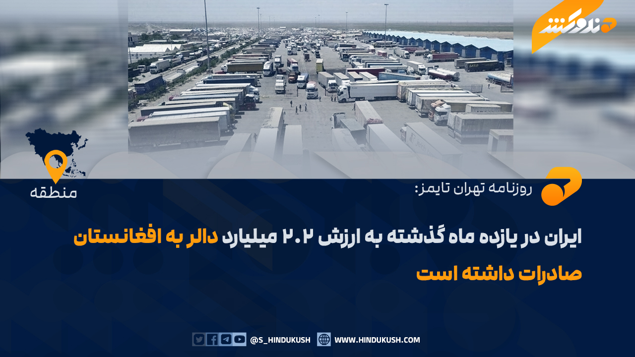 روزنامهٔ تهران تایمز گزارش داده که ایران در یازده ماه گذشته، به ارزش ۲.۲ میلیارد دالر، کالاهای غیرنفتی به افغانستان صادر کرده است.