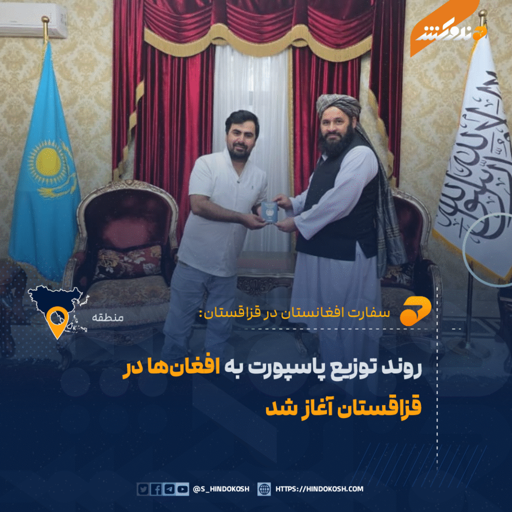 سفارت افغانستان در پایتخت قزاقستان، آستانه خبر داده است که با توزیع نخستین پاسپورت افغان توسط شارژدافیر این کشور، روند توزیع پاسپورت‌ها رسماً آغاز گردید.