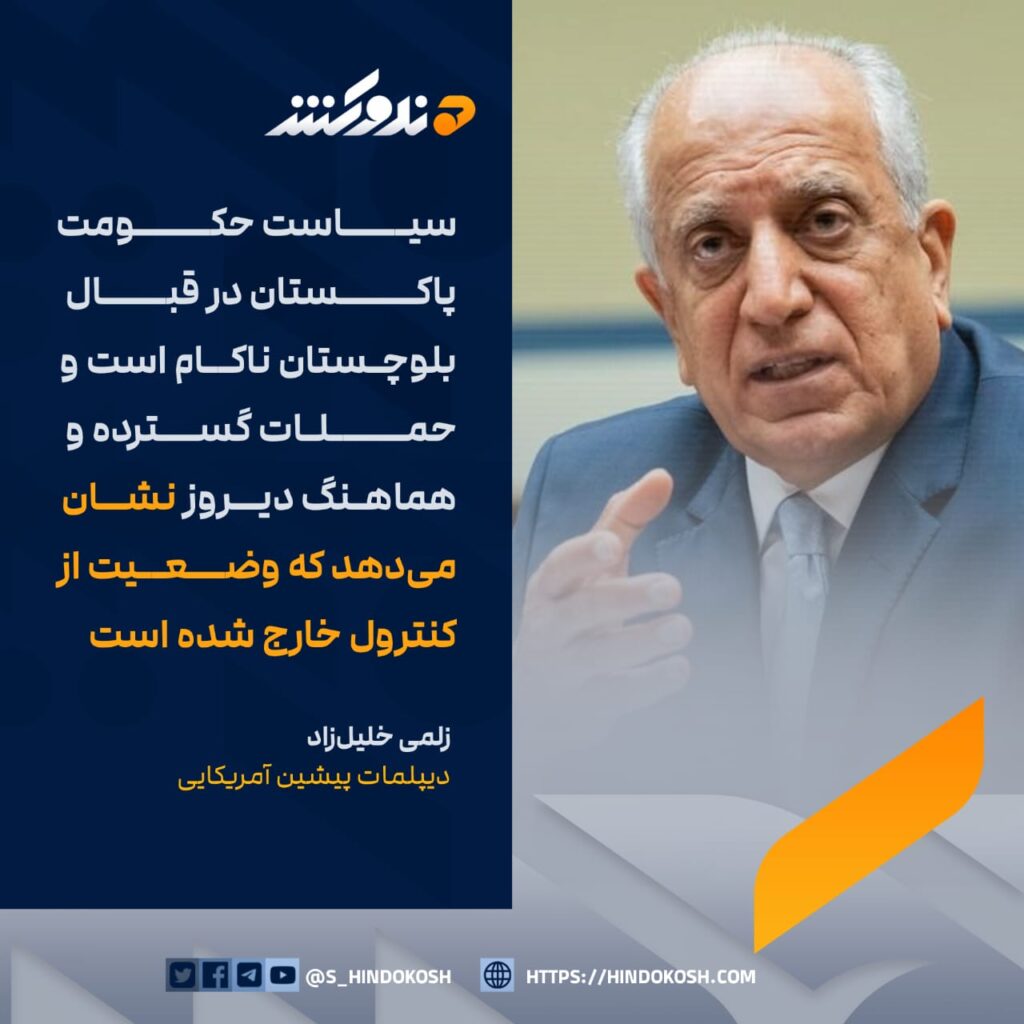 زلمی خلیل‌زاد، دیپلمات پیشین آمریکایی، در واکنش به حملات گسترده روز گذشته توسط مسلحان بلوچ در بلوچستان، اظهار داشته است که راهبرد رژیم پاکستان در قبال بلوچستان ناکام است.