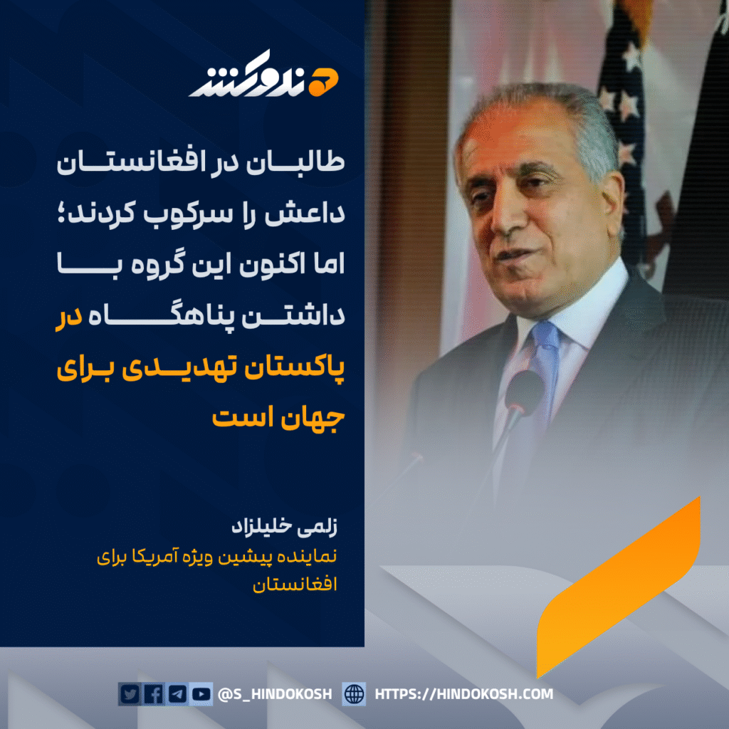 زلمی خلیلزاد، نماینده پیشین ویژه آمریکا برای افغانستان: طالبان در افغانستان داعش را سرکوب کردند؛ اما اکنون این گروه با داشتن پناهگاه در پاکستان تهدیدی برای جهان است