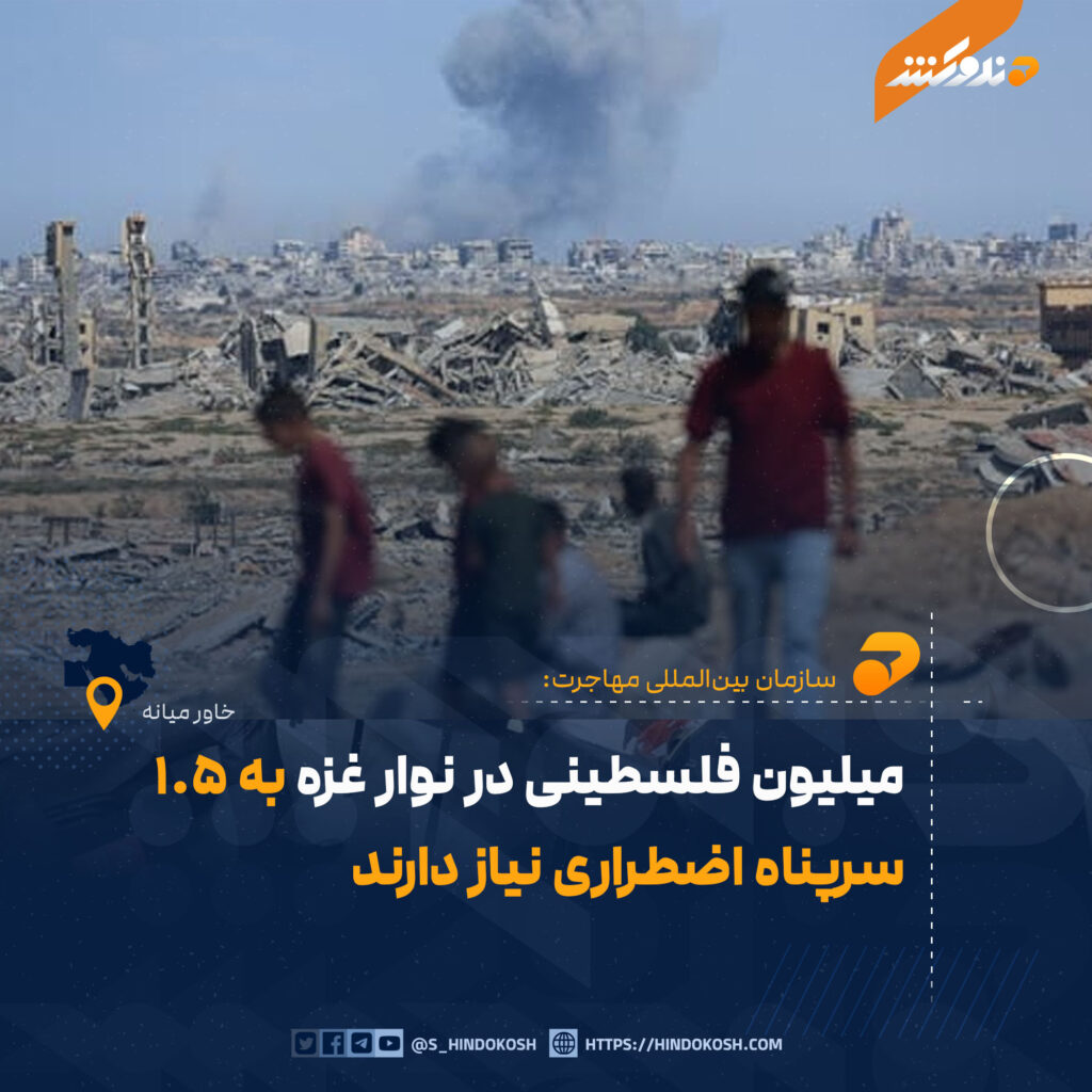 سازمان بین‌المللی مهاجرت اعلام کرده است که در حال حاضر، دست‌کم ۱.۵ میلیون فلسطینی در نوار جنگ‌زده غزه به سرپناه اضطراری نیاز دارند.