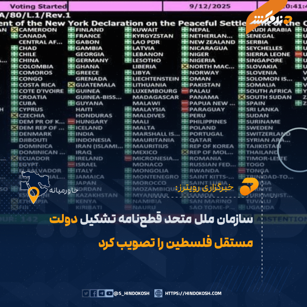 سازمان ملل متحد قطعنامه تشکیل دولت مستقل فلسطین را تصویب کرد