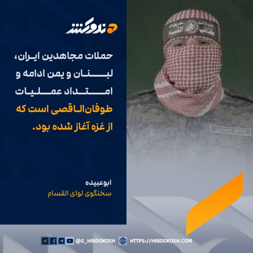 سخنگوی القسام، شاخه نظامی جنبش حماس، ابوعبید: حملات مجاهدین ایران، لبنان و یمن ادامه و امتداد عملیات طوفانالاقصی است که از غزه آغاز شده بود.