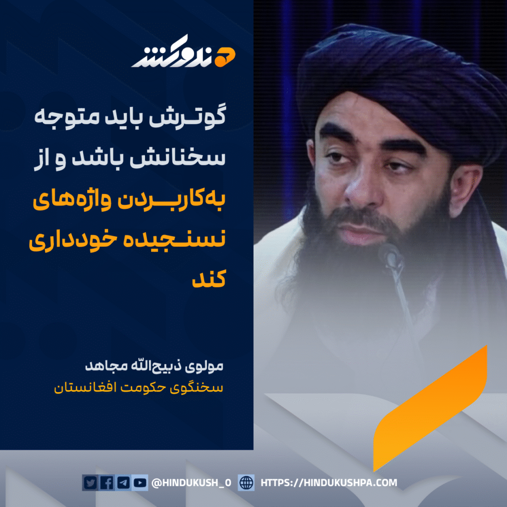 آقای مجاهد در واکنش به سخنان گوترش گفته است: «رئیس سازمان ملل باید متوجه معنا و مفهوم سخنان و الفاظ خود باشد و از استعمال کلمات نسنجیده خودداری کند.»