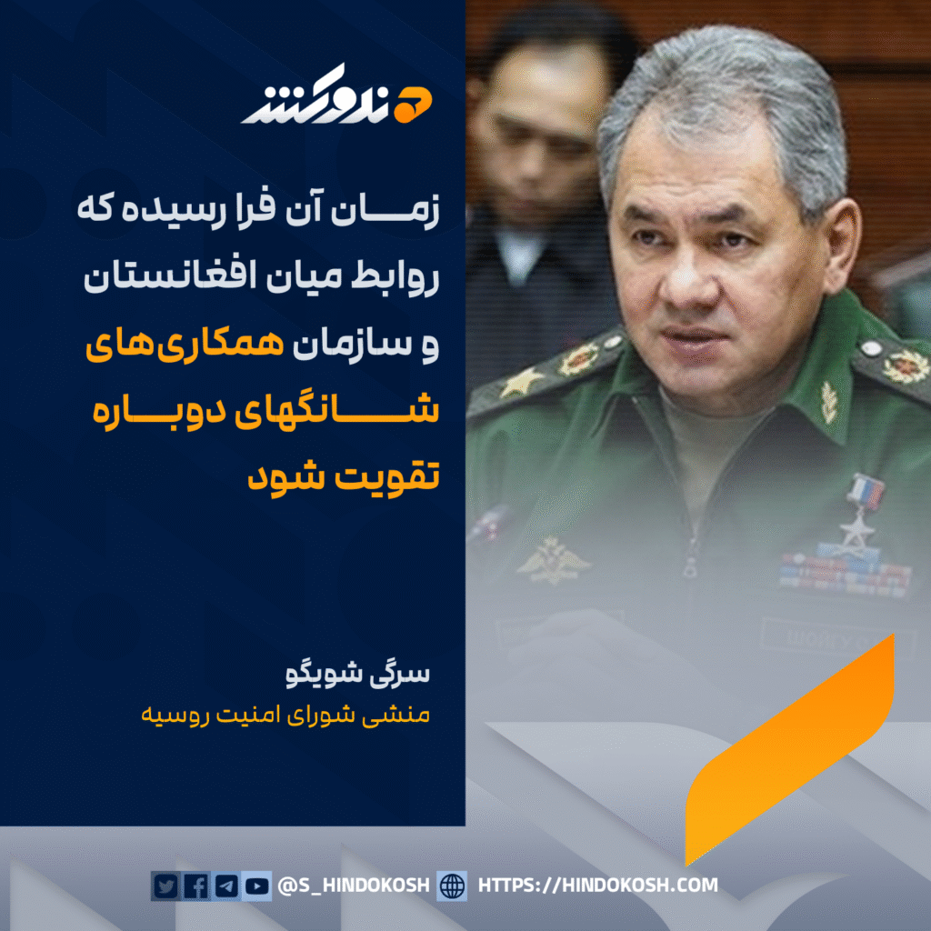 سرگی شویگو، منشی شورای امنیت روسیه، در مقالهای که در روزنامه روسی «راسیسکایا گازیتا» منتشر شده، نوشته است که اکنون زمان آن فرا رسیده تا روابط میان افغانستان و سازمان همکاریهای شانگهای دوباره تقویت گردد.