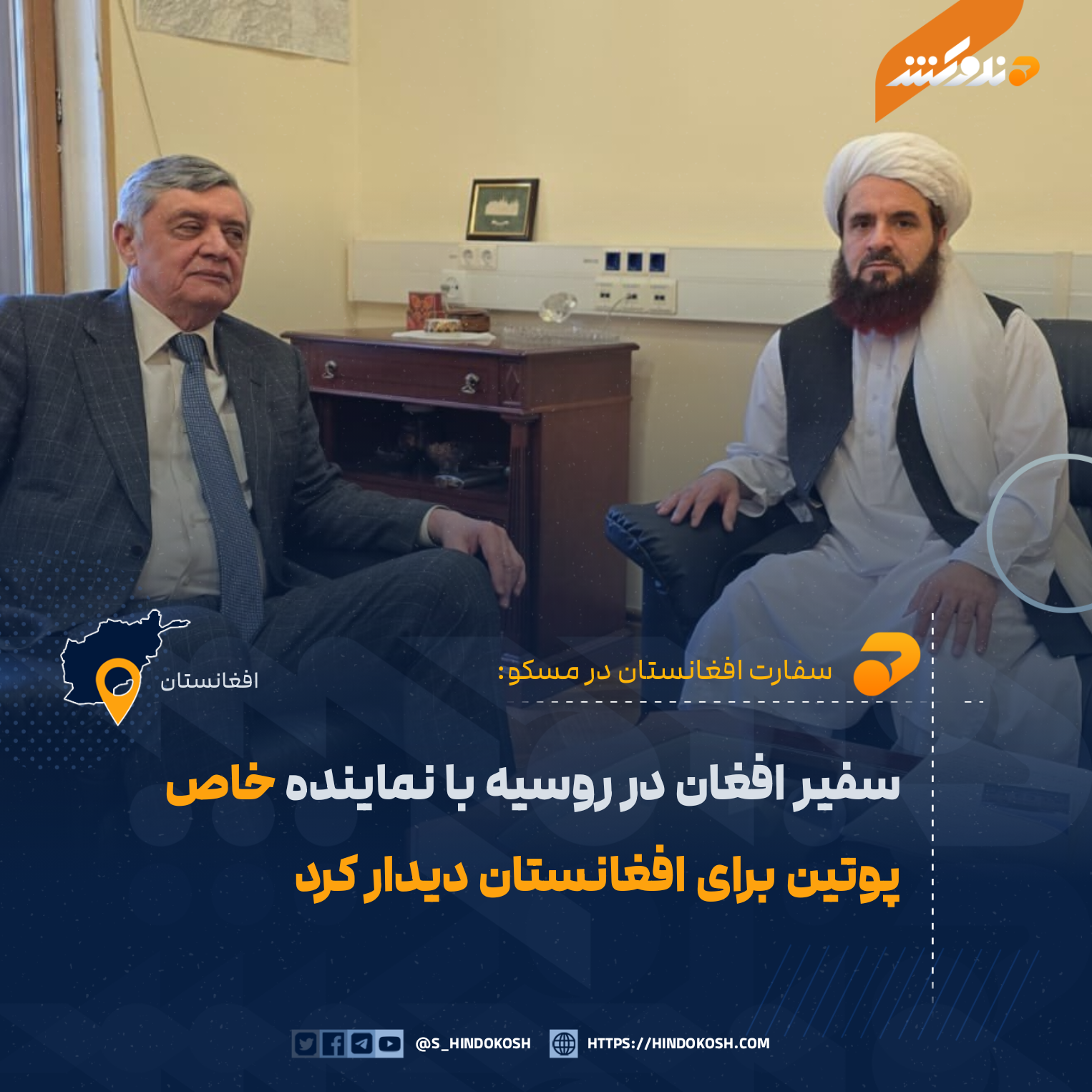 سفارت افغانستان در مسکو اعلام کرده است که مولوی گلحسن حسن در دیدار با نماینده خاص رئیسجمهور روسیه برای افغانستان، ضمیر کابلوف، درباره وضعیت روابط دوجانبه میان افغانستان و روسیه و گسترش همکاریها گفتوگو کرده است.