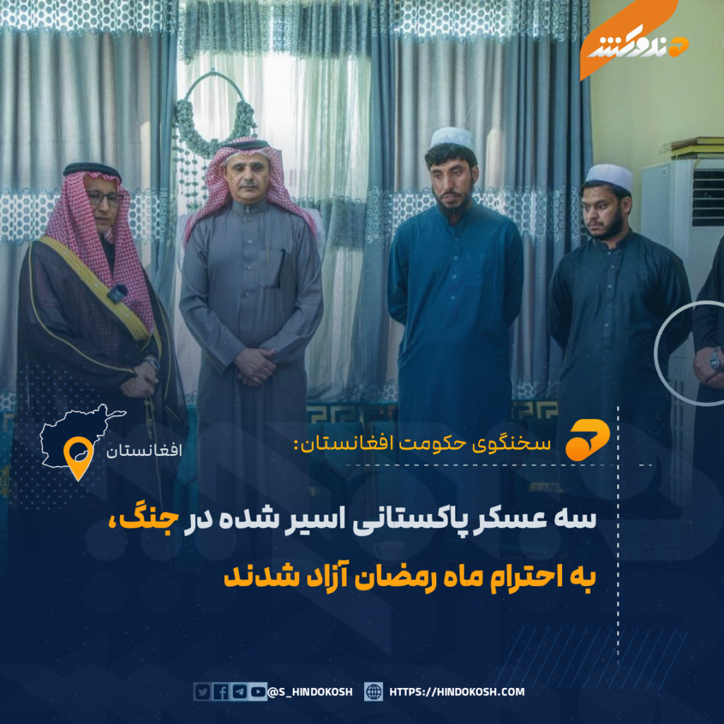 مولوی ذبیح‌الله مجاهد، سخنگوی حکومت افغانستان می‌گوید که به احترام ماه مبارک رمضان و بنا بر درخواست هیئت اعزامی از عربستان سعودی، سه عسکر اردوی پاکستان که در جریان جنگ گذشته توسط نیروهای افغان اسیر شده بودند، آزاد شدند.