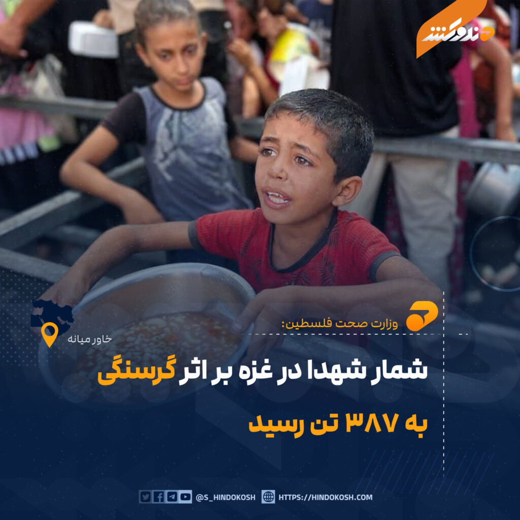وزارت صحت فلسطین خبر داده است که در ۲۴ ساعت گذشته، ۵ فلسطینی دیگر بهشمول ۳ کودک در نوار غزه بر اثر گرسنگی و سوءتغذیه شهید شدهاند.