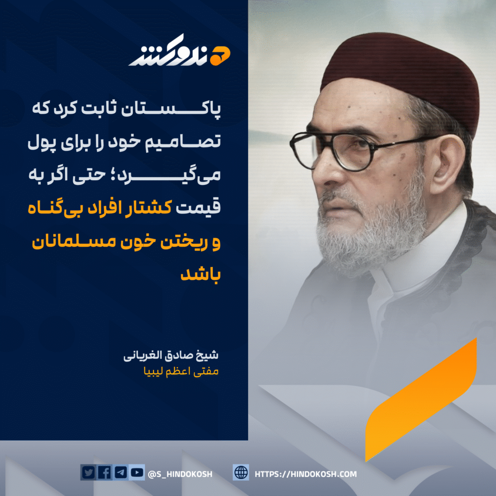 شیخ صادق الغریانی، مفتی اعظم لیبیا: پاکستان ثابت کرد که تصامیم خود را برای پول می‌گیرد؛ حتی اگر به قیمت کشتار افراد بی‌گناه و ریختن خون مسلمانان باشد
