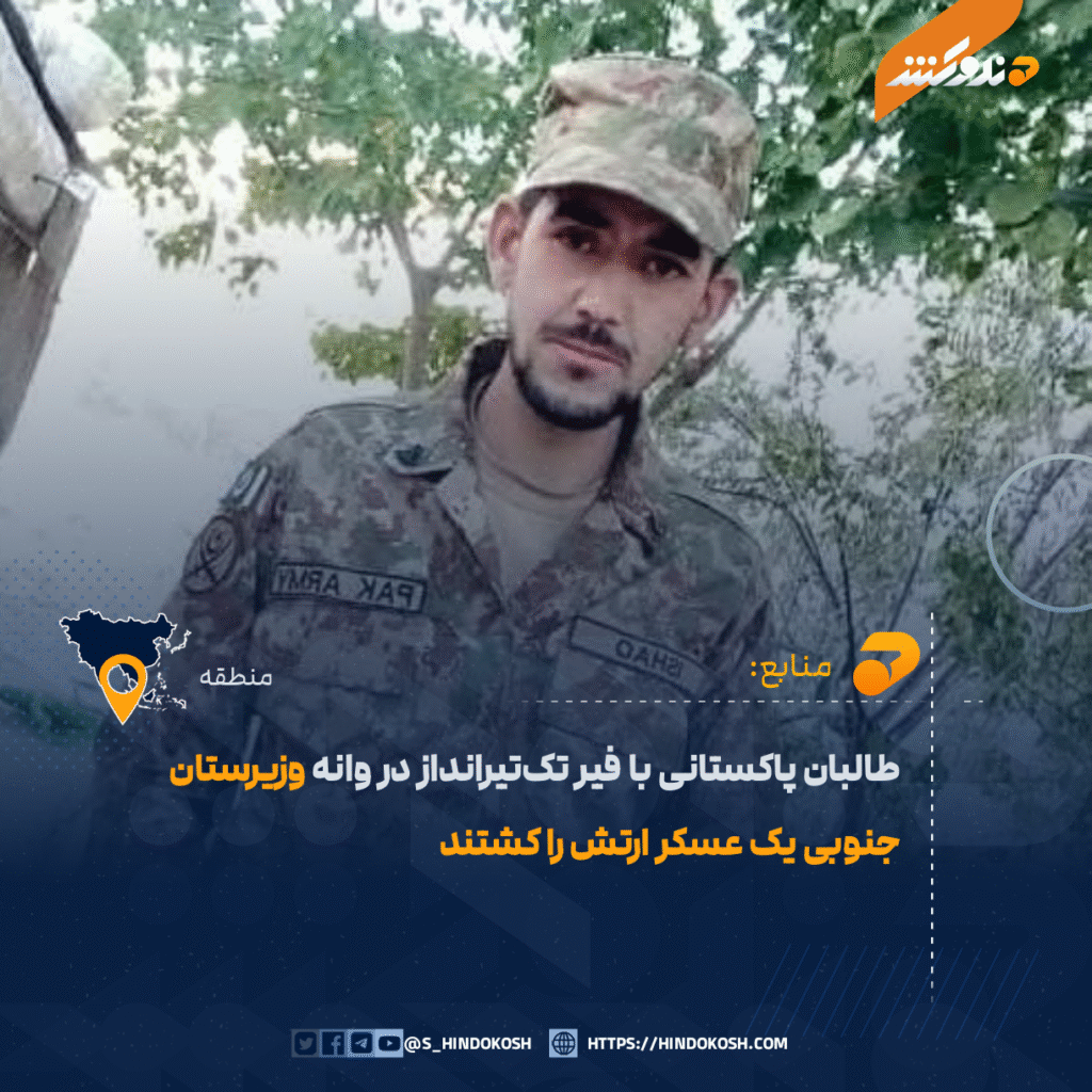 طالبان پاکستانی با فیر تکتیرانداز در وانه وزیرستان جنوبی یک عسکر ارتش را کشتند