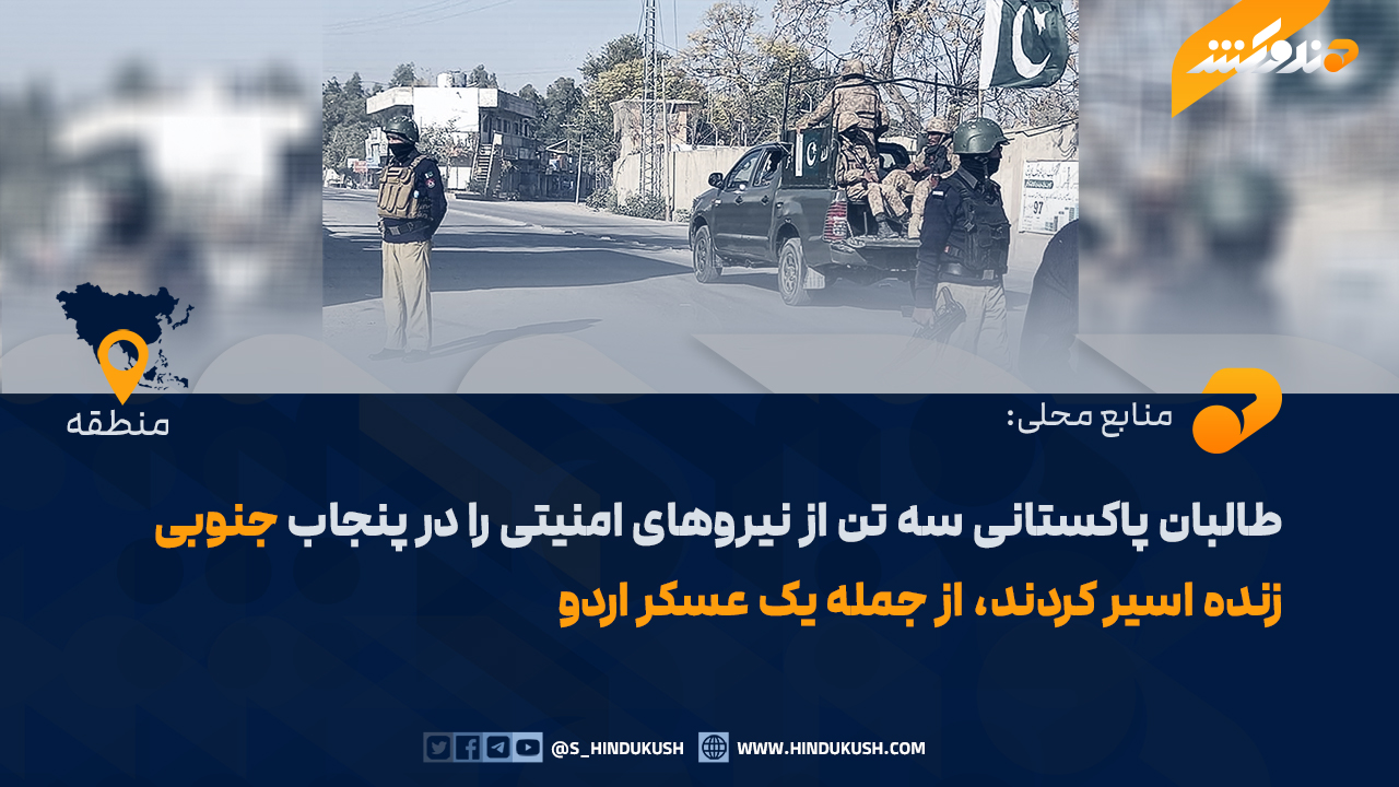 منابعی از پاکستان به «صدای هندوکش» گفته‌اند که تحریک طالبان پاکستان (TTP) در جریان عملیاتی در منطقه «تونسۀ شریف» از ولسوالی «ډېره غازي خان» واقع در پنجاب جنوبی، در قریۀ «جروار»، یک عسکر از نیروهای سرحدی (FC) و یک عسکر اردوی پاکستان را همراه با یک تن دیگر از کارکنان امنیتی زنده گرفتار کرده و با خود برده‌اند.