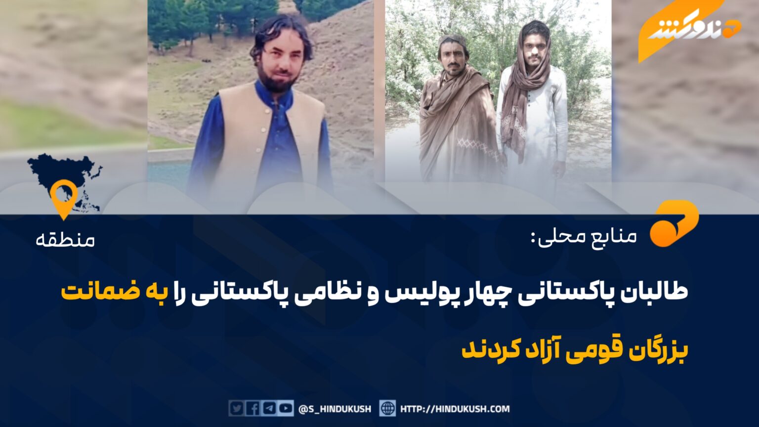 منابع محلی از خیبرپختونخوا به صدای هندوکش میگویند که طالبان پاکستانی دو نظامی پاکستانی به نامهای عصمتالله و شفیعالله را که از وظیفه کنار رفته و از عملکرد گذشتهشان ابراز پشیمانی کردهاند، به ضمانت بزرگان قومی آزاد کردهاند.