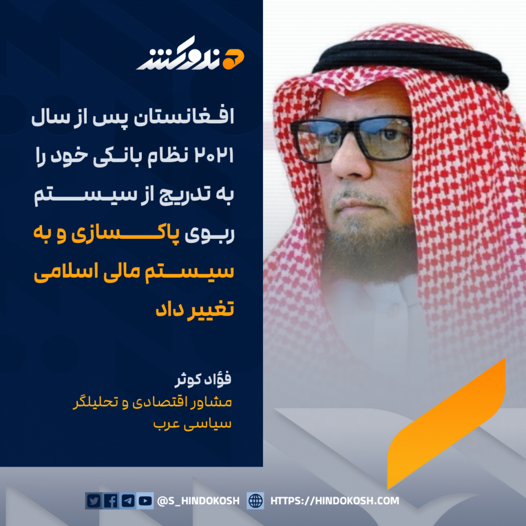فؤاد کوثر، مشاور اقتصادی و تحلیلگر سیاسی عرب: افغانستان پس از سال ۲۰۲۱ نظام بانکی خود را به تدریج از سیستم ربوی پاکسازی و به سیستم مالی اسلامی تغییر داد