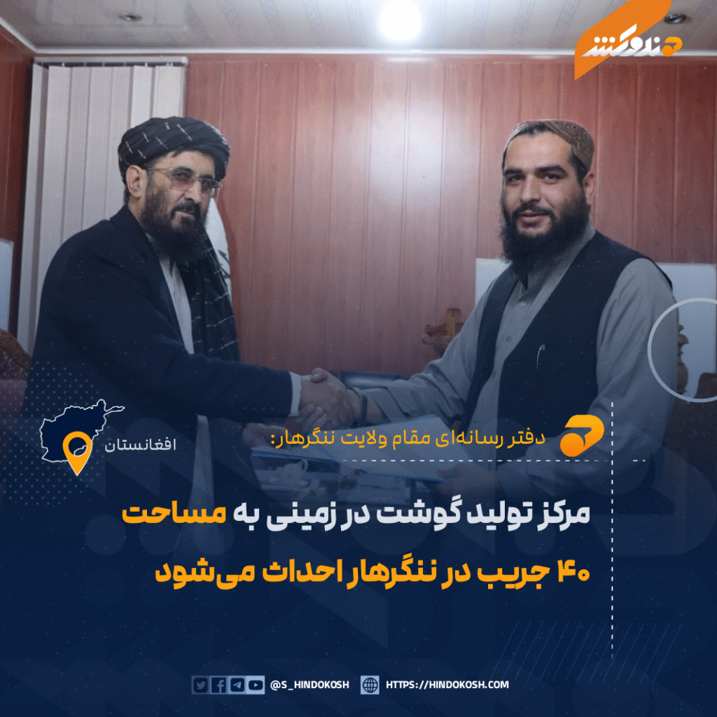 دفتر رسانهای مقام ولایت ننگرهار اعلام کرد که توافقنامهای جهت احداث یک مسلخ استاندارد و مدرن میان شرکت زراعتی «وادی ننگرهار» و شرکت امارتی «گوشت و لبنیات» به امضا رسیده است.