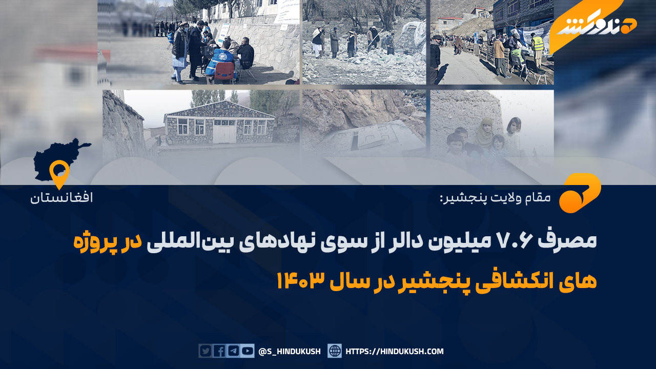 بر بنیاد معلومات مقام ولایت پنجشیر، نهادهای بین‌المللی در سال ۱۴۰۳ هجری خورشیدی مجموعاً ۷.۶ میلیون دالر امریکایی را در بخش کمک‌های بشری و تطبیق پروژه‌های مختلف انکشافی در این ولایت به مصرف رسانیده‌اند.
