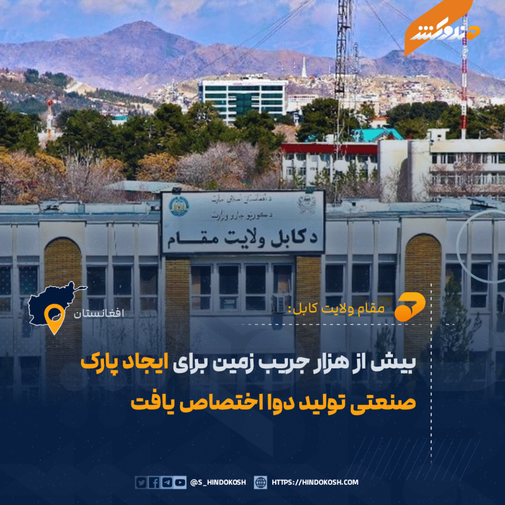 مقام ولایت کابل: بیش از هزار جریب زمین برای ایجاد پارک صنعتی تولید دوا اختصاص یافت