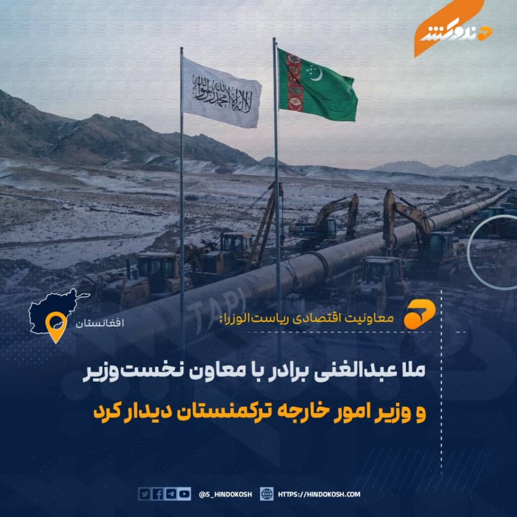 ملا عبدالغنی برادر، معاون اقتصادی ریاست‌الوزرا، در ولایت هرات با رشید مردوف، معاون نخست‌وزیر و وزیر امور خارجه ترکمنستان دیدار نمود.