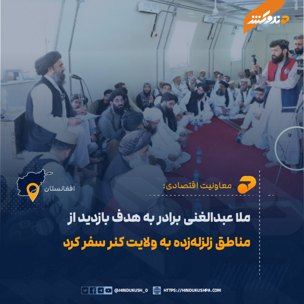 ملا عبدالغنی برادر معاون اقتصادی ریاستالوزراء، امروز جمعه (۲۱ سنبله) در همراهی با مسئولان محلی ولایتهای کنر و ننگرهار، به هدف بازدید از مناطق زلزلهزده، به ولایت کنر سفر کرد.