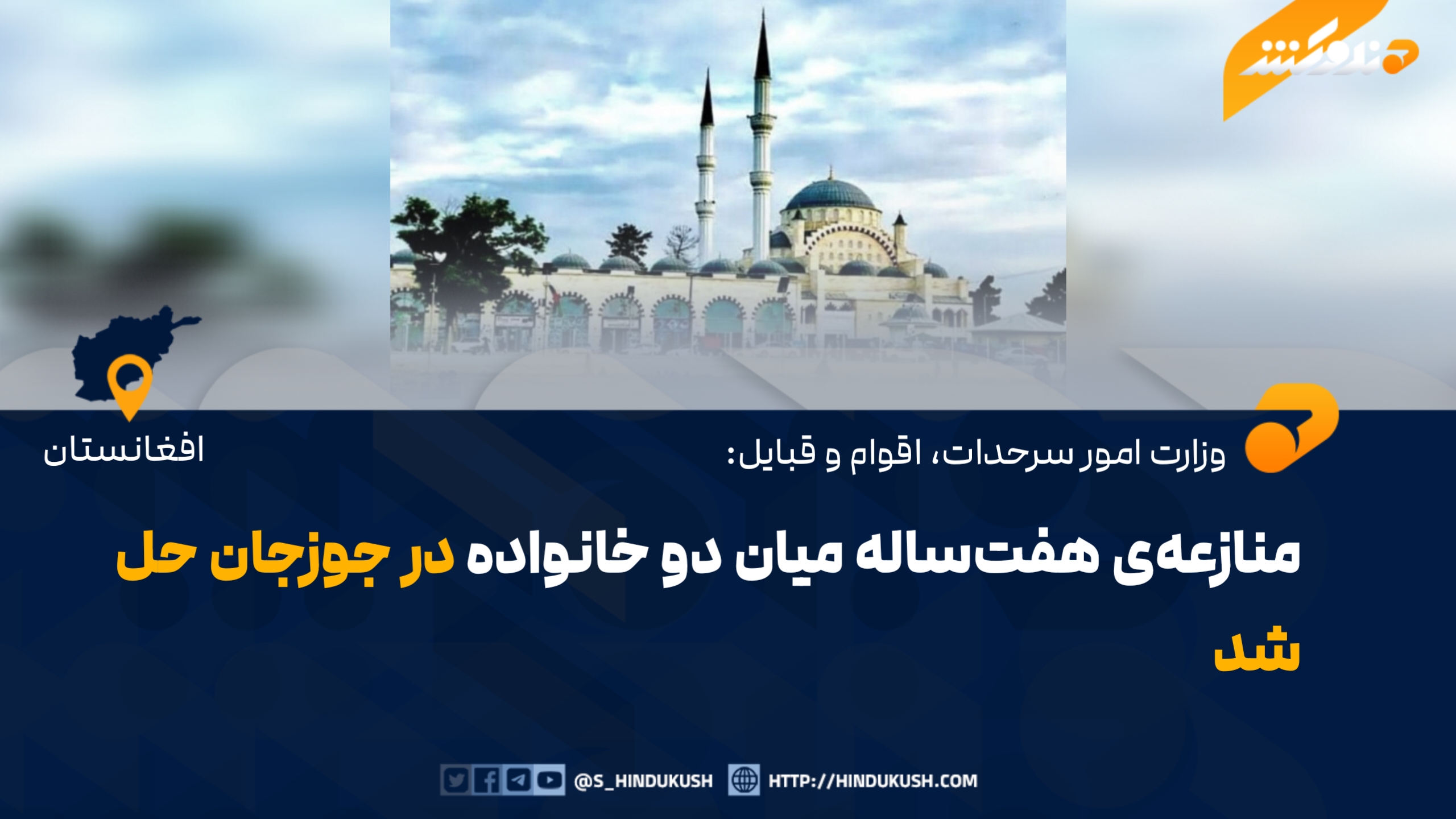 وزارت امور سرحدات، اقوام و قبایل اعلام کرده است که با میانجی‌گری بزرگان محل و مسئولان حکومتی در ولایت جوزجان، منازعه‌ی هفت‌ساله میان دو خانواده پایان یافته و هر دو طرف به زندگی صلح‌آمیز برگشته‌اند.