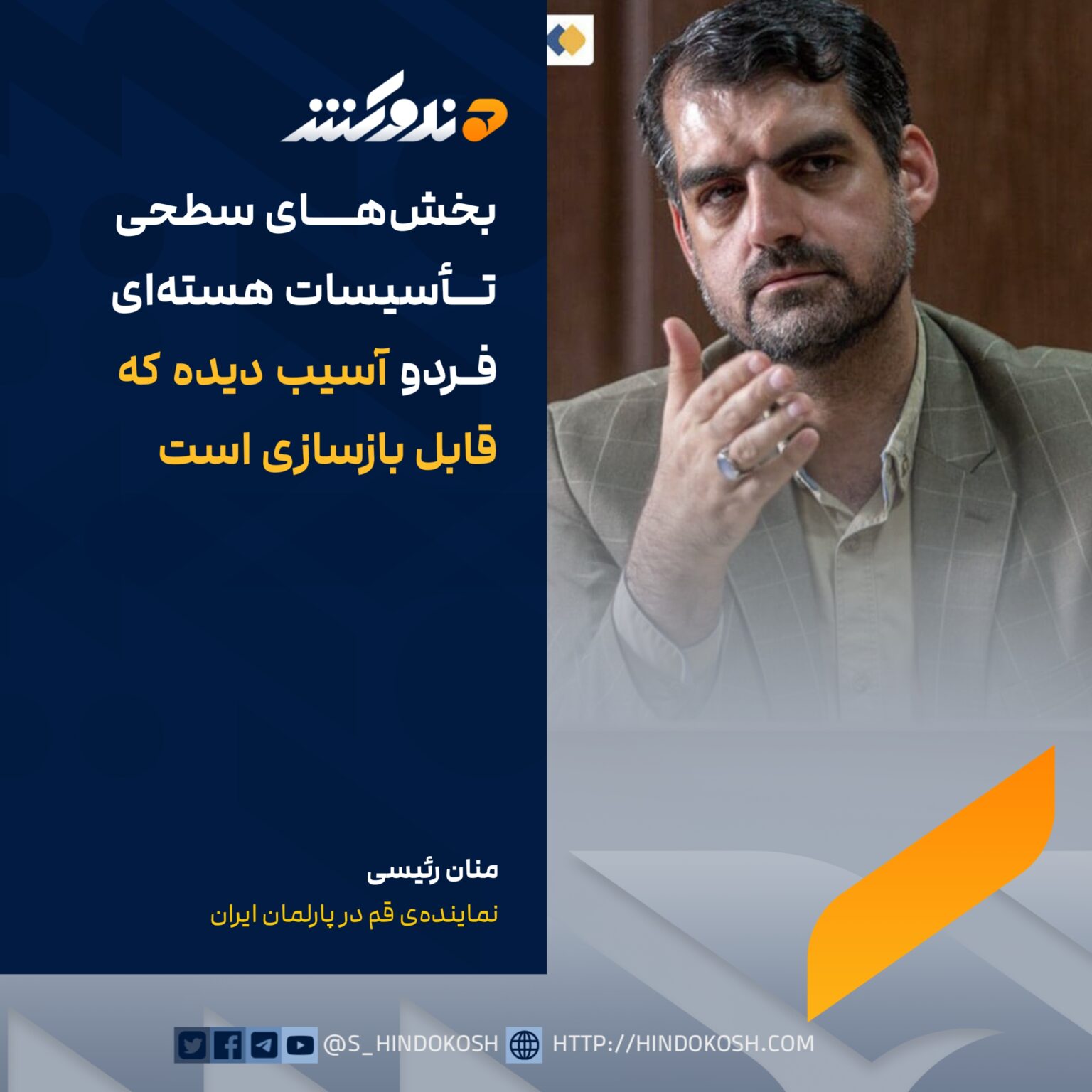 منان رئیسی، نماینده‌ی ولایت قم در پارلمان ایران، گفته است که ادعاهای رئیس‌جمهور آمریکا، دونالد ترامپ نادرست است و تأسیسات هسته‌ای فردو آسیب جدی ندیده‌اند.