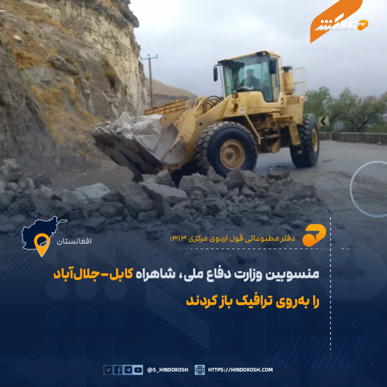 دفتر مطبوعاتی قول اردوی مرکزی ۳۱۳ میگوید که نیروهای لوای سوم پیادهٔ این قول اردو، امروز شاهراه کابل–جلالآباد را که در منطقهٔ بازار سروبی بهدلیل ریزش کوه مسدود شده بود، بازگشایی کردند.